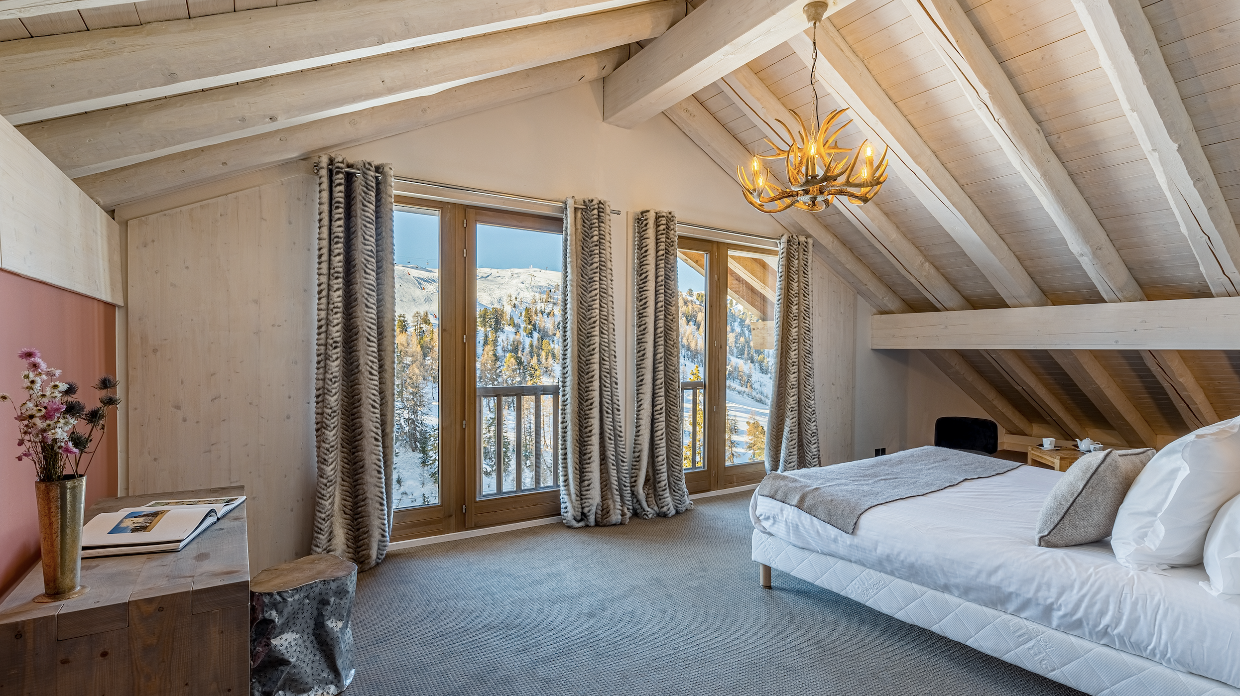- Les 3 chalets de luxe proposés par l’hôtel, pouvant accueillir 12 à 14 personnes.