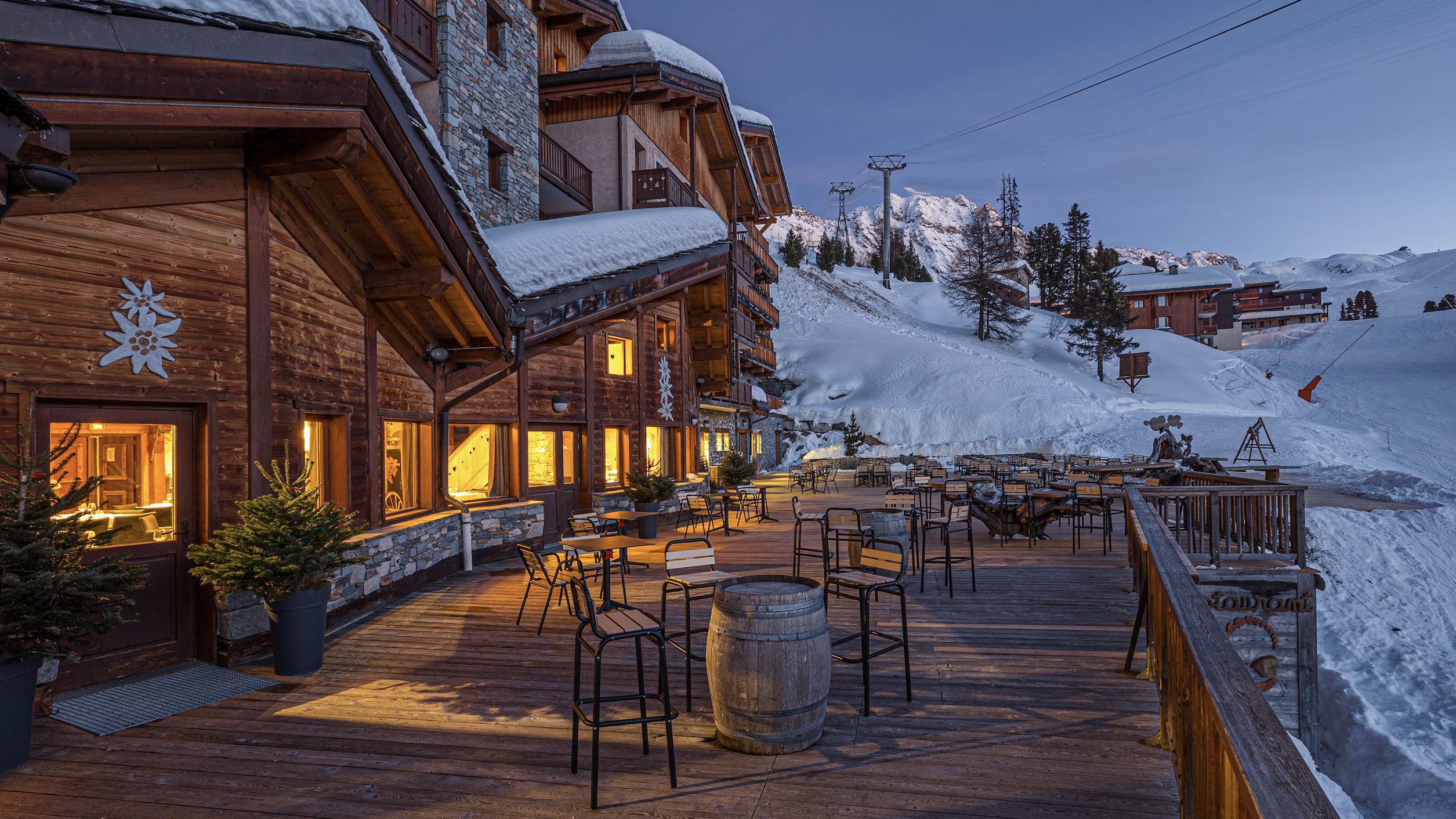 - La grande terrasse du restaurant, idéale pour un break au bord des pistes à l’heure du déjeuner.