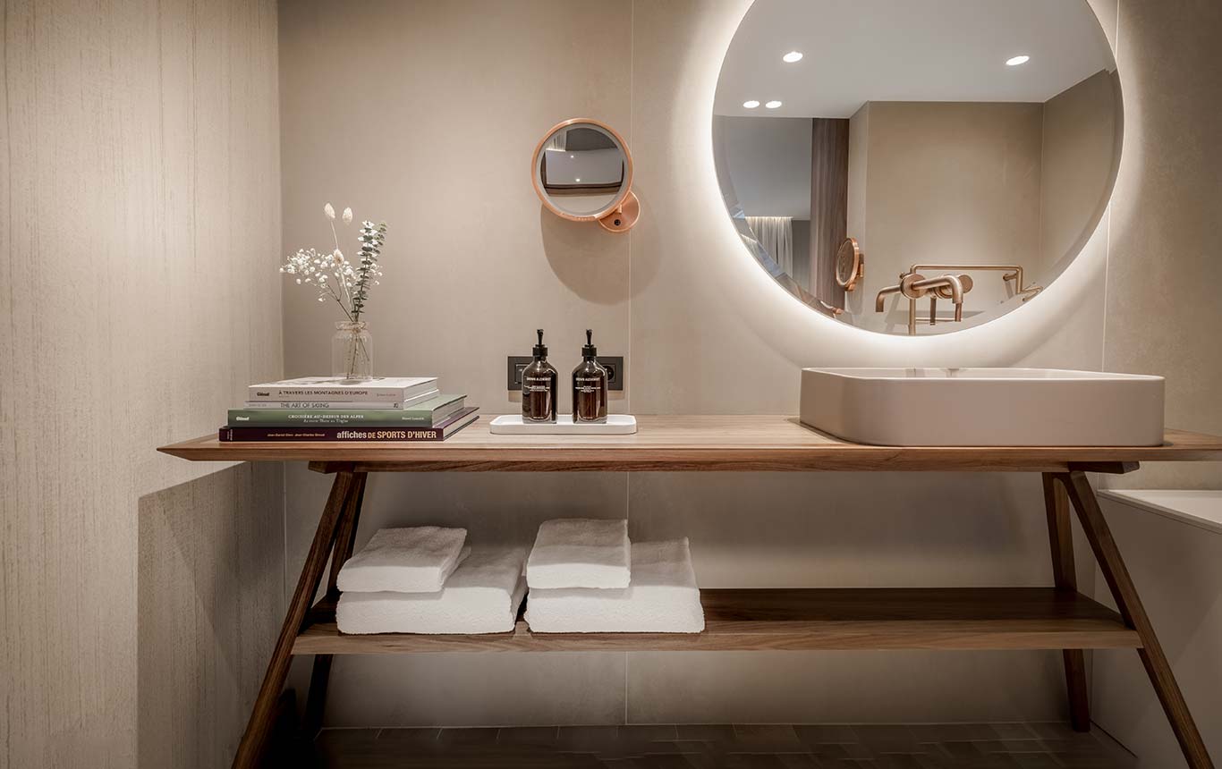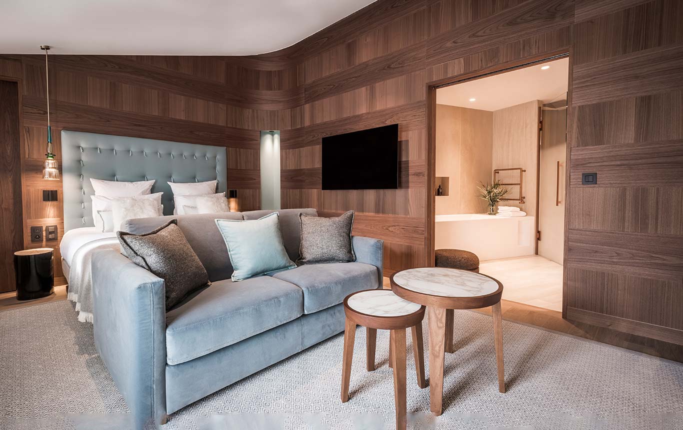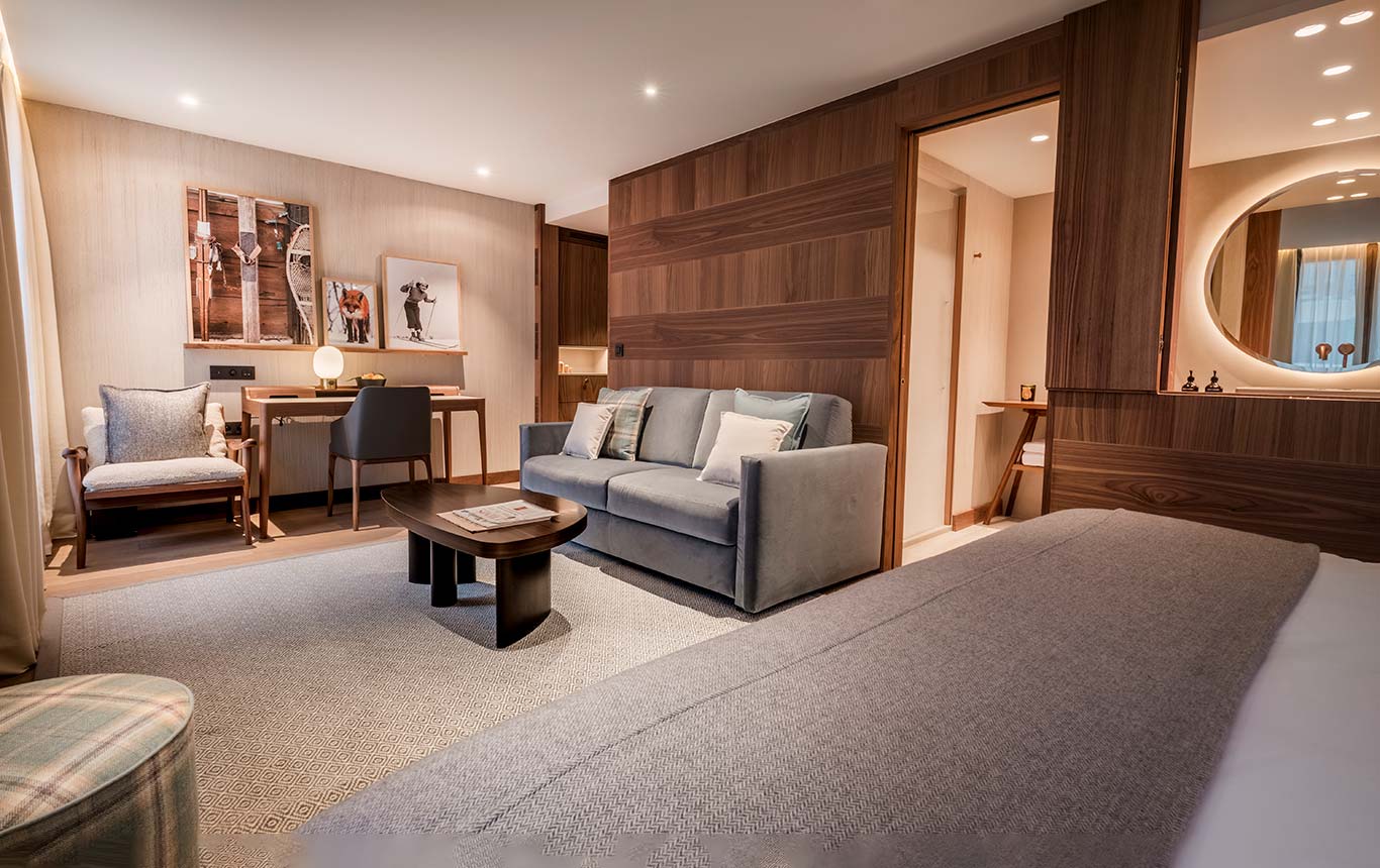 Premier établissement du groupe Steller Hotels, Le Cœur de Megève porte bien son nom, puisqu’il est situé en plein centre du village, à deux pas de la place de l’Église et à 3 minutes à pied de la remontée mécanique du Chamois. L’hôtel a rouvert il y a deux ans, après avoir été totalement rénové et repensé par l’architecte d’intérieur Sybille de Margerie (Mandarin Oriental Paris, Cheval Blanc Courchevel, Royal Champagne…). L’alliage du charme rustique de l’ancien avec la déco contemporaine et chic est une vraie réussite.