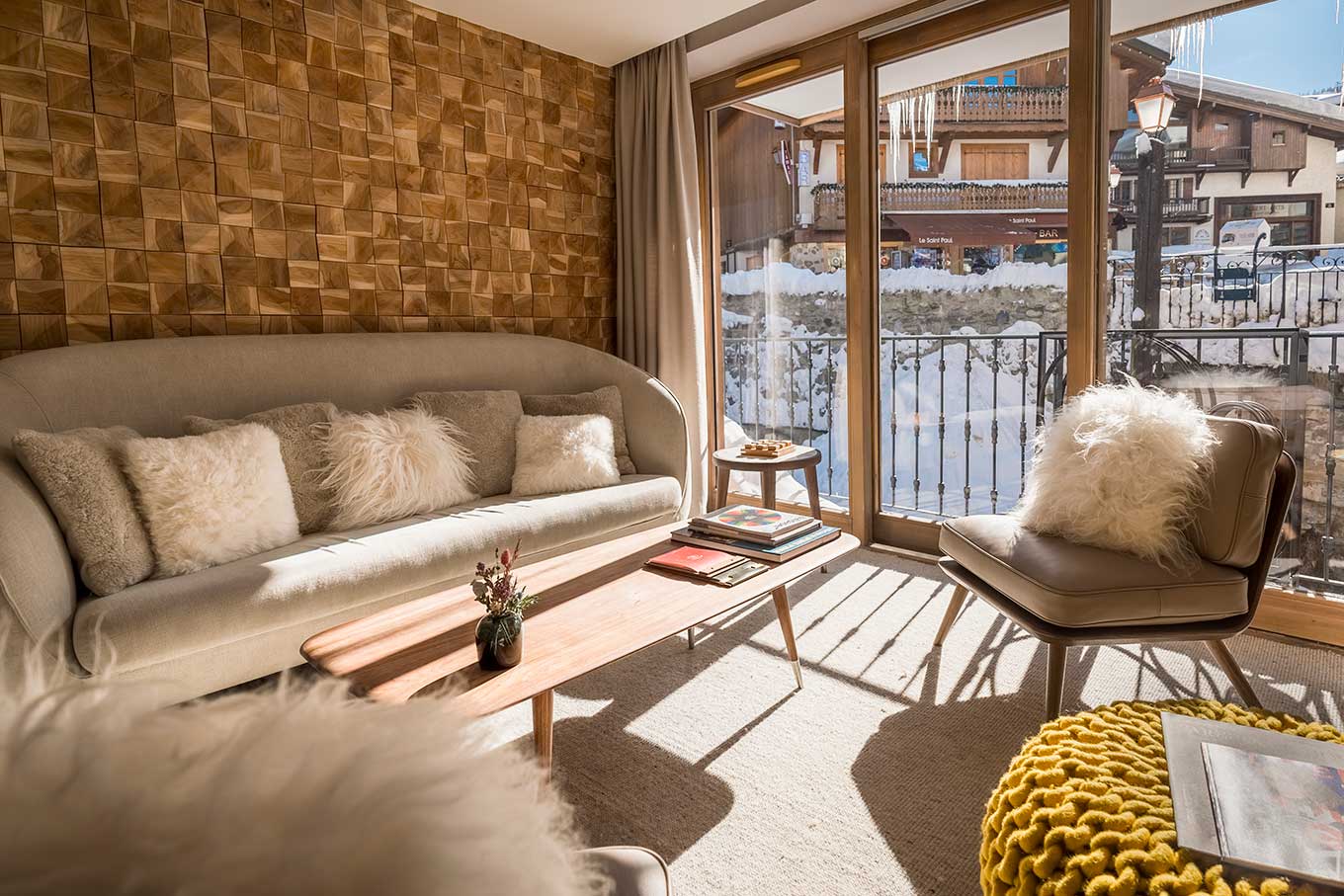 - L’emplacement unique de l’hôtel, littéralement au cœur de Megève, à deux pas de l’église du village ;