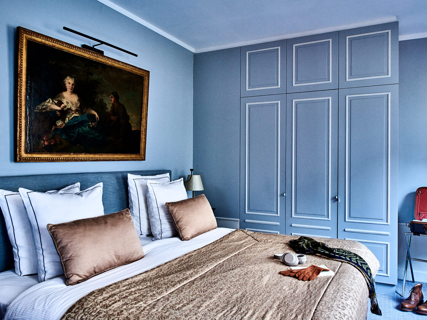 - La Junior Suite Signature, dont le plafond est peint d’une fresque du XVIIe siècle, en parfait état de conservation et représentant le Bon Augure couronné par la Vertu, sous le regard de l’Intelligence.